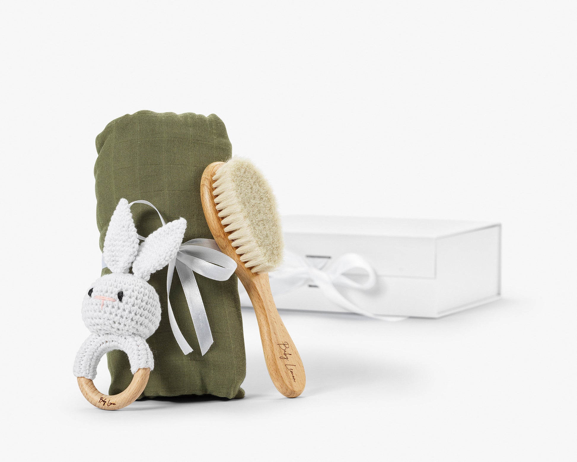 Den klassiska gåvoboxen är en perfekt kombination av omtanke och funktionalitet – en stilfull gåva som passar alla tillfällen när du vill fira det lilla livet. Med tre noggrant utvalda produkter erbjuder denna box en blandning av charm, kvalitet och användbarhet.