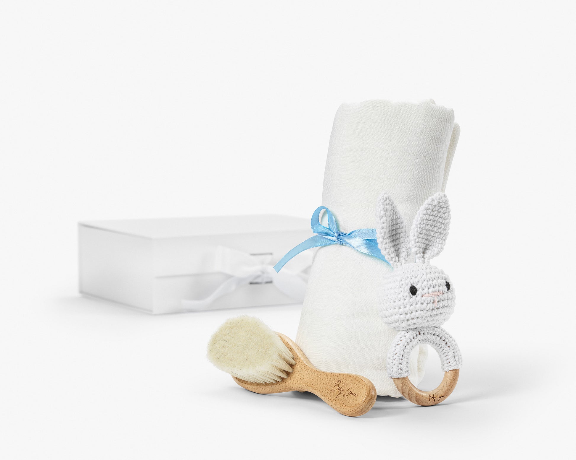 Den klassiska gåvoboxen är en perfekt kombination av omtanke och funktionalitet – en stilfull gåva som passar alla tillfällen när du vill fira det lilla livet. Med tre noggrant utvalda produkter erbjuder denna box en blandning av charm, kvalitet och användbarhet.
